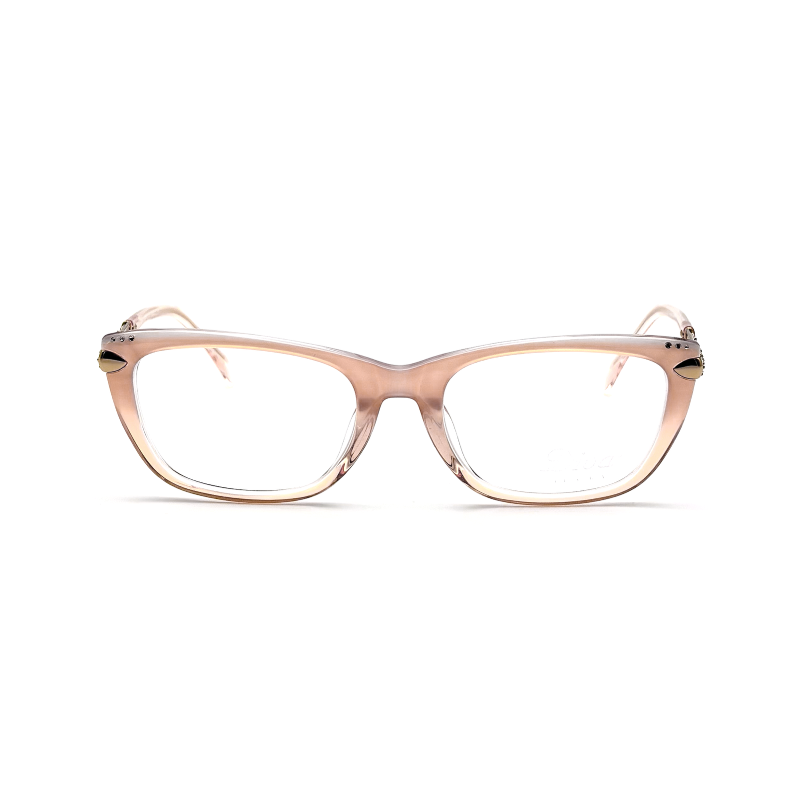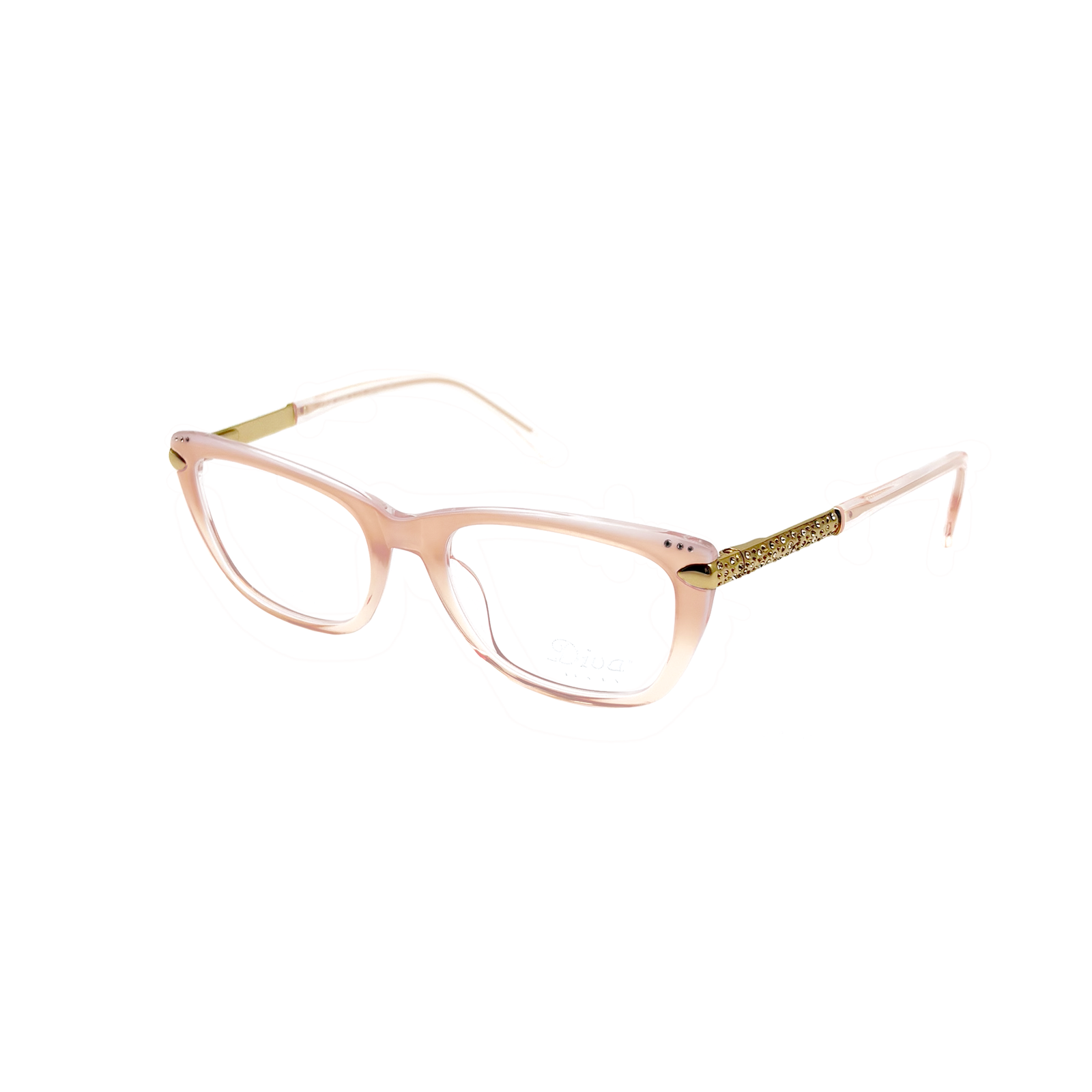 The DIVA M D5558 model features a feminine Cat-Eye design in a very light pink color, made with lightweight plastic frames and sides adorned with Swarovski crystals, offering an elegant and luxurious look.