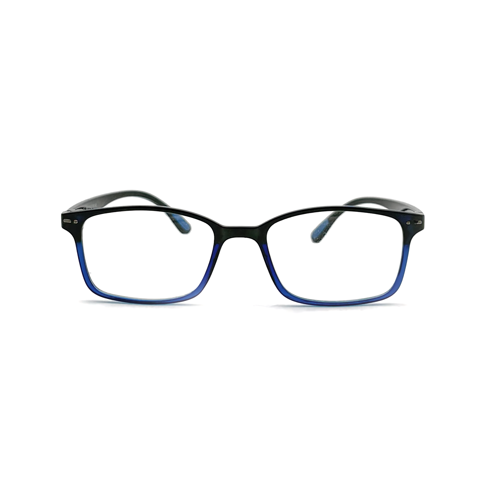 These men’s glasses feature a square frame in a stylish combination of blue and black, creating a modern and dynamic look. The contrast between the two colors adds depth and character, while the structured square shape enhances facial definition and gives a confident appearance.