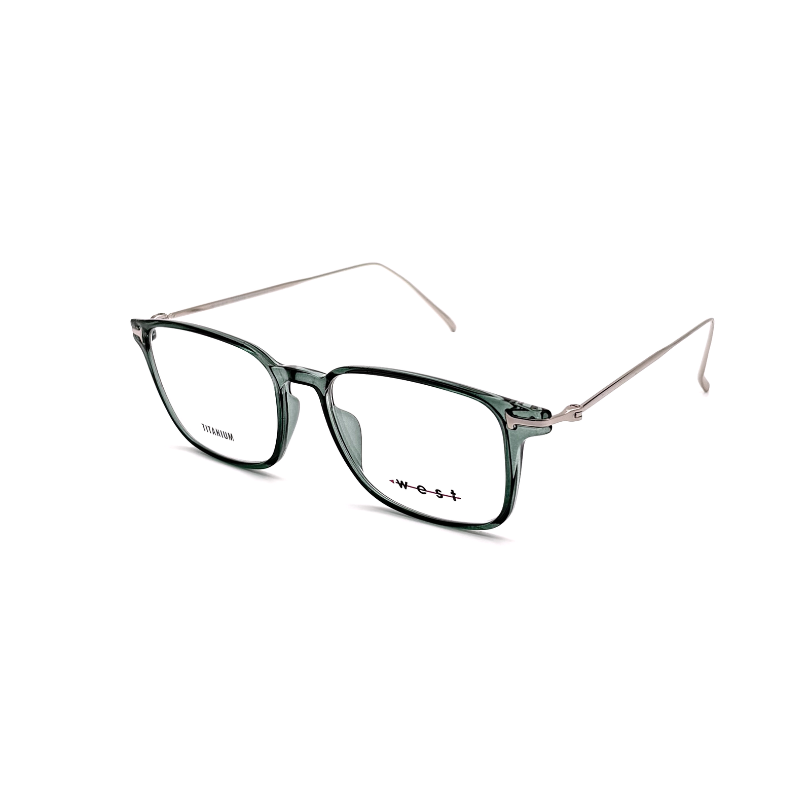 The VISTA 1WV106 C5 model features square titanium frames for women in a light green color, offering a modern, elegant, and durable look.